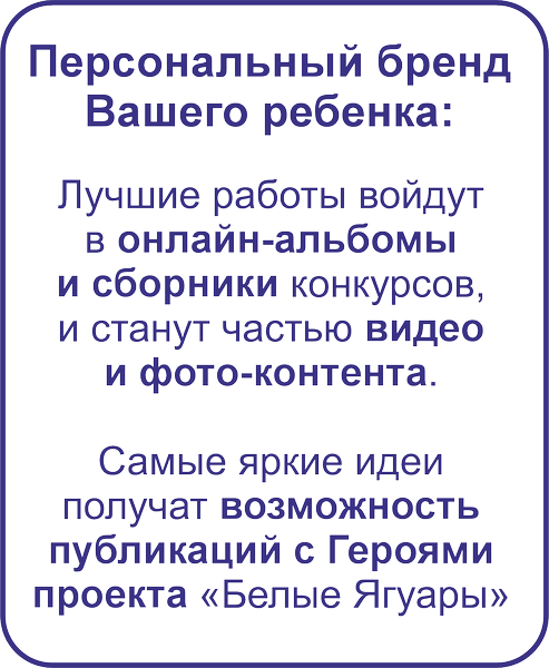 Старт творческих Конкурсов "Путешествие Белых Ягуаров" для детей до 8 лет (участие бесплатно)